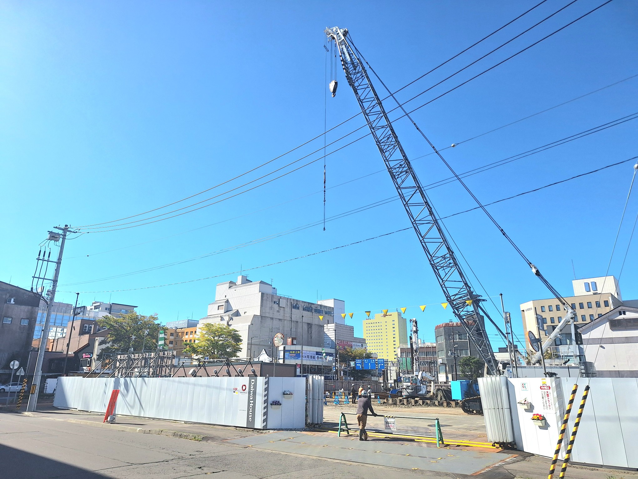 太平洋建設工業(本社・釧路市)は、釧路市末広町6丁目1-1ほかでホテルの建設を進めている。竣工後は、共立メンテナンス(同・東京都千代田区)グループが一棟借りをして、全館畳敷きの「ドーミーイン」和風プレミアムブランド「御宿野乃」を道内初展開する。(写真は、太平洋建設が建築主となって始まっているホテル建設)