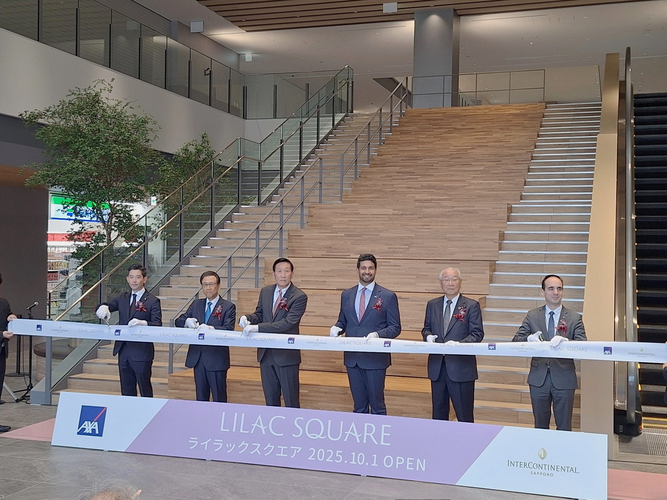 アクサ生命保険(本社・東京都港区、札幌本社・札幌市中央区)は2025年10月1日、札幌市中央区の中島公園エリアに竣工したオフィス・ホテル・商業の複合ビル「ライラックスクエア」(南10条西1丁目)をグランドオープンさせた。世界水準の環境性能と国内最強BCP(事業継続計画)を備えたビルで、札幌初の国際的ラグジュアリーホテル「インターコンチネンタル札幌」も開業した。都心エリアからやや離れた中島公園の新しいランドマークとして、地域を活気づけそうだ。(写真は、ライラックスクエアのテープカット。左から、インターコンチネンタル札幌ポートフォリオ総支配人のベンシャミン・ライトゲップ氏、札幌市長の秋元克広氏、アクサ生命保険社長兼CEOの安渕聖司氏、IHGホテルズ&リゾーツマネージングディレクター日本&マイクロネシア兼IHG・ANA・ホテルズグループジャパン合同会社CEOのアビジェイ・サンディリア氏、北海道商工会議所連合会会頭岩田圭剛氏、アクサ生命保険副社長のクリストフ・アヴネル氏)