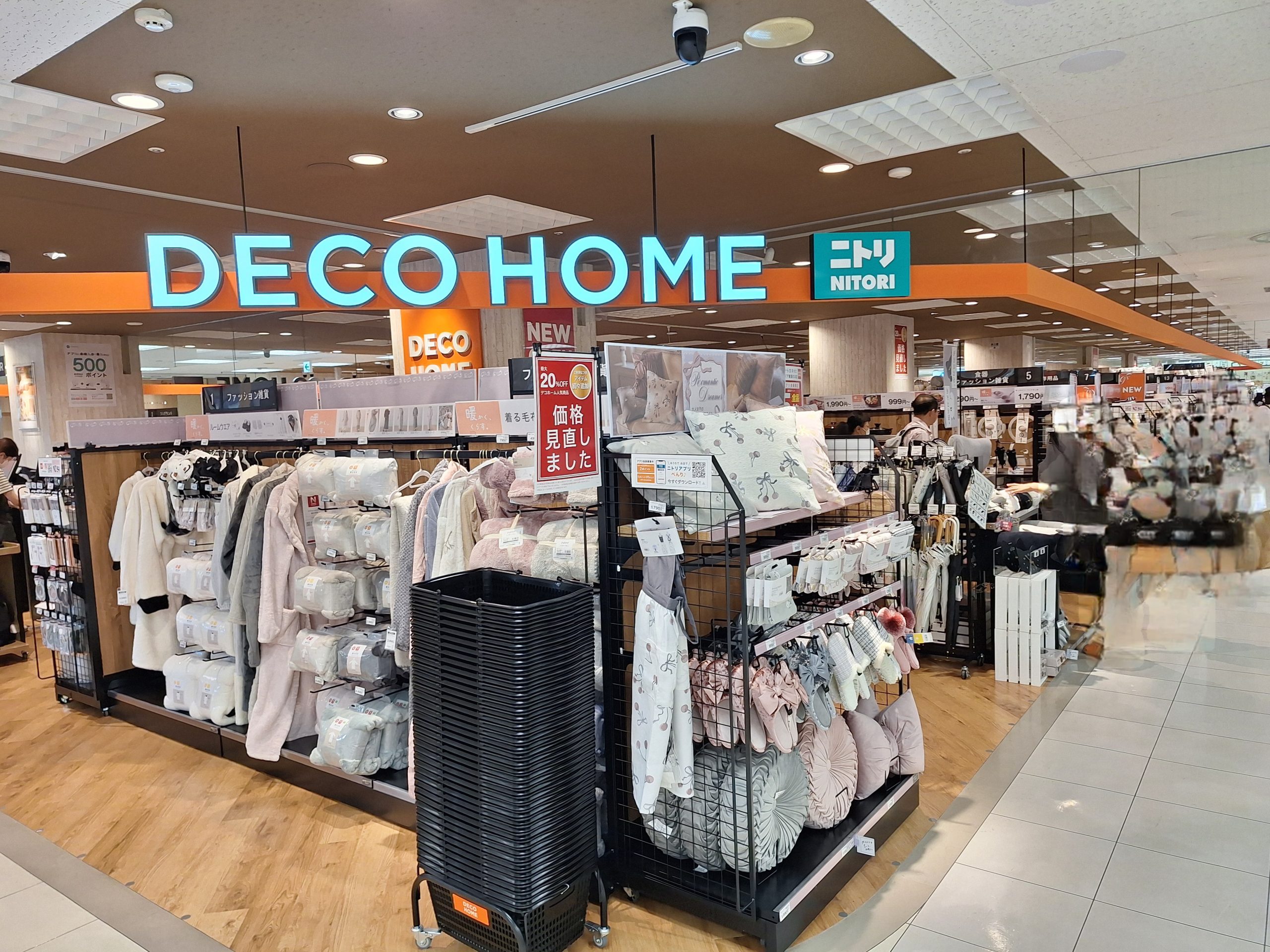 「デコホーム」は、家具・インテリア用品の大型店舗「ニトリ」で扱っている商品よりも手軽な商品を扱い、リーズナブルな価格で提供するインテリア・雑貨の専門店。日用品から部屋のアクセントになるようなアイテムを、品質、デザイン、買いやすい価格で提供、全国の駅チカ商業施設やショッピングセンターなどに出店している。
