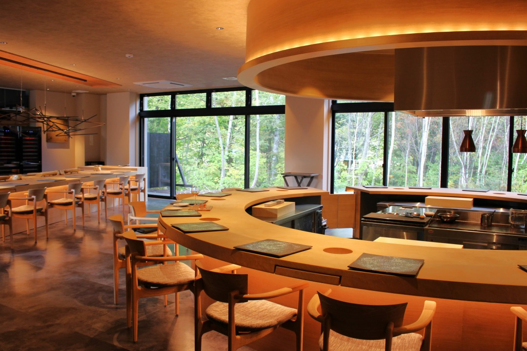 両岸から張り出した紅葉が見事な定山渓の景勝地の一つ「錦橋」と「舞鶴の瀞」からも程近く、温泉街の中心部からは少し外れた森のすぐ側に佇む新しいオーベルジュ。