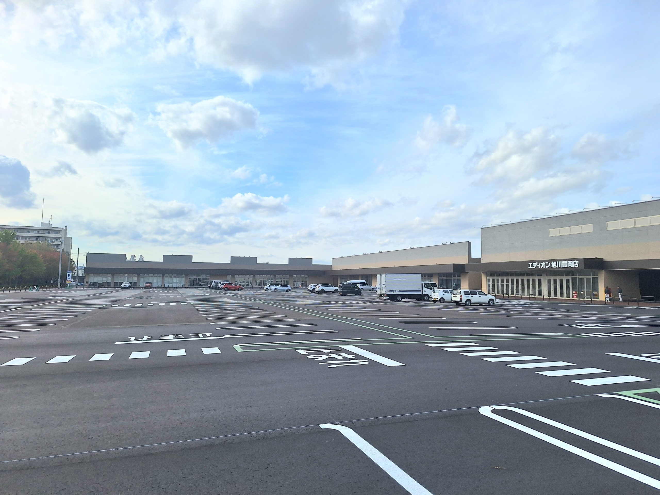家電量販店「エディオン旭川豊岡店」のA棟、飲食と物販の小割区画が6つあるB棟、物販のC棟、D棟から構成され、延べ床面積の合計は約4262坪(1万4065・75㎡)。商圏は半径2㎞、1日当たり約3900人の集客を予定している。駐車場台数は478台、駐輪場台数は48台。B棟には、「眼鏡市場旭川龍谷店」、雑貨店「Ideai旭川店」(旭川市内店舗から移転)、