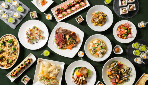 ライブキッチンでは厚切りベーコンとポルチーニ茸のラビオリやスペイン産ハモンセラーノ×南瓜もち、北海道産牛のステーキや天ぷらなど、料理人が目の前で腕をふるう贅沢なひとときを演出、香りや音とともに広がるライブ感が魅力です。