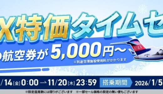 アイベックスエアラインズ株式会社(IBEX)は2026年1月5日~3月18日搭乗分が対象となる『IBEX特価タイムセール』を実施します!