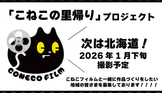 その地域ならではのショートドラマを地域の方々と一緒に制作していく継続的なプロジェクト『こねこの里帰り』の第3弾が、2026年1月「北海道」にて撮影が決定しました!